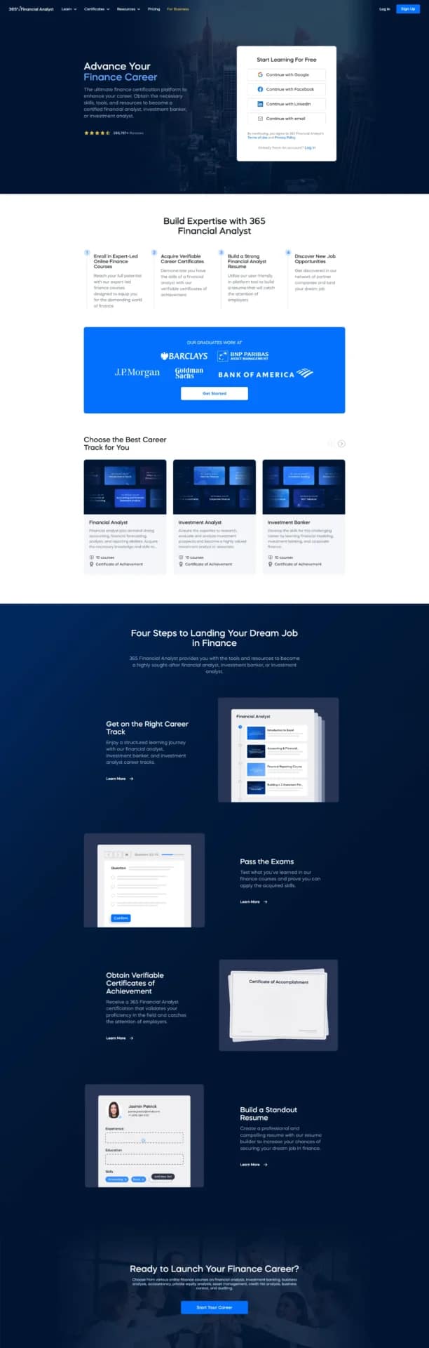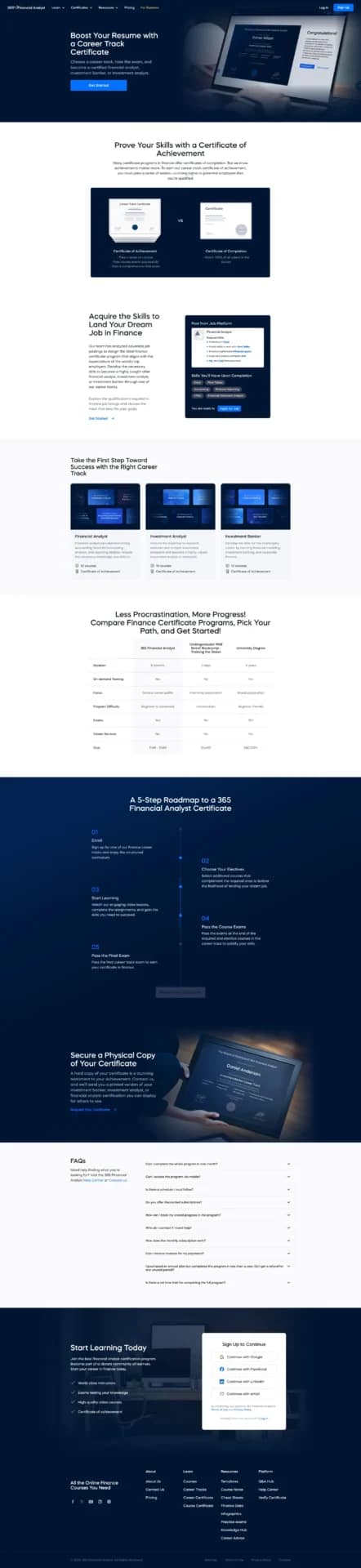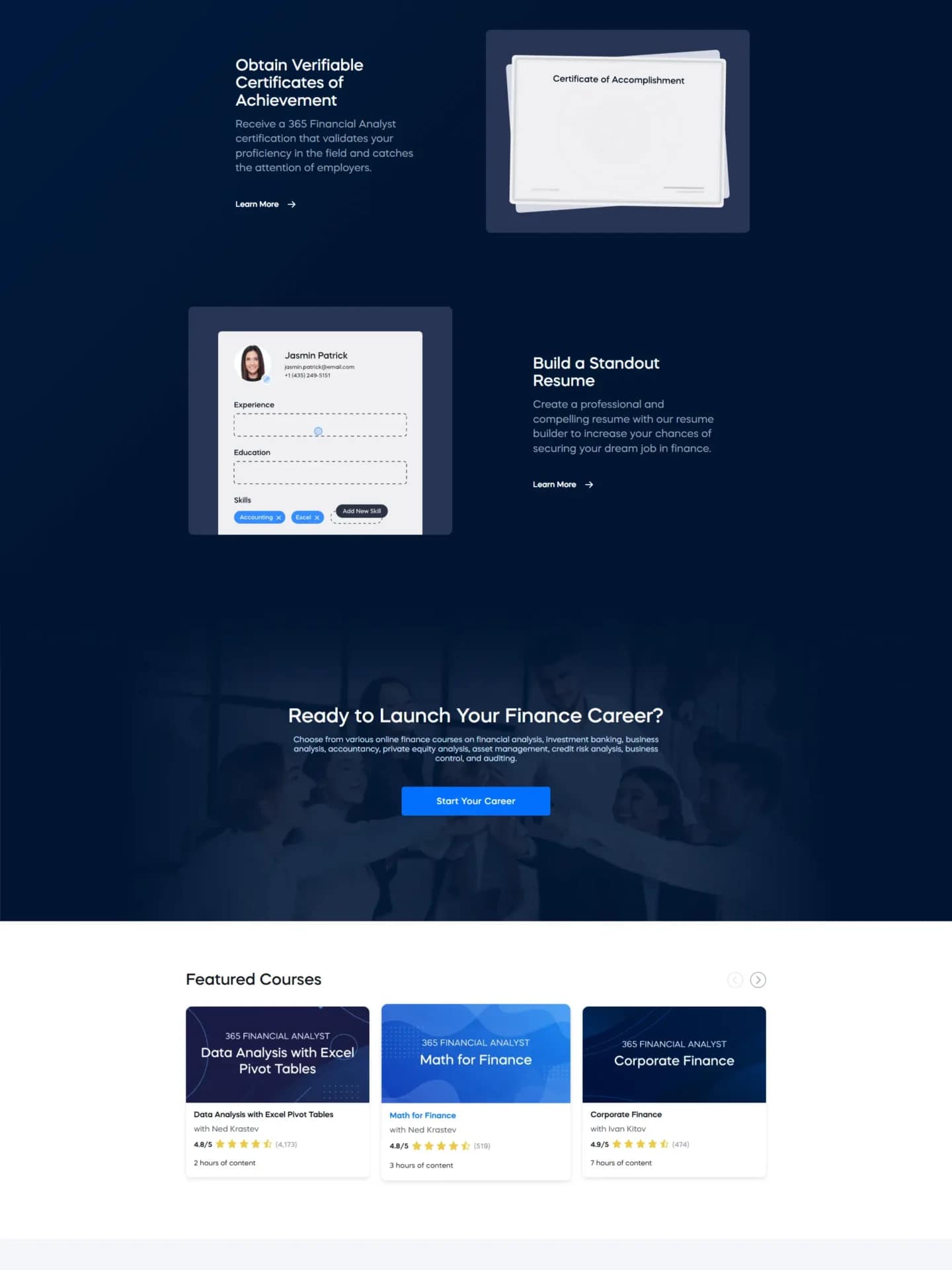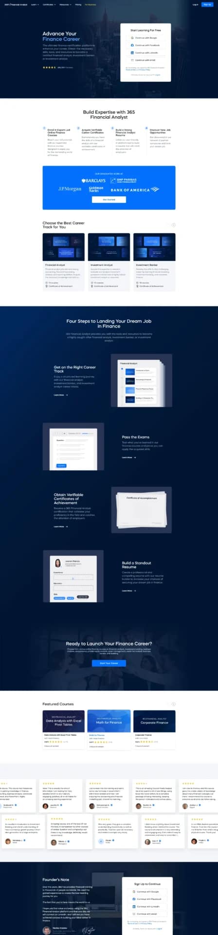 365 Financial Analyst е глобален лидер в предоставянето на финансови курсове, сертифициране и кариерни насоки. Нашата цел беше да създадем интуитивна и висококонвертираща платформа, която да подкрепя потребителите в постигането на техните професионални цели.