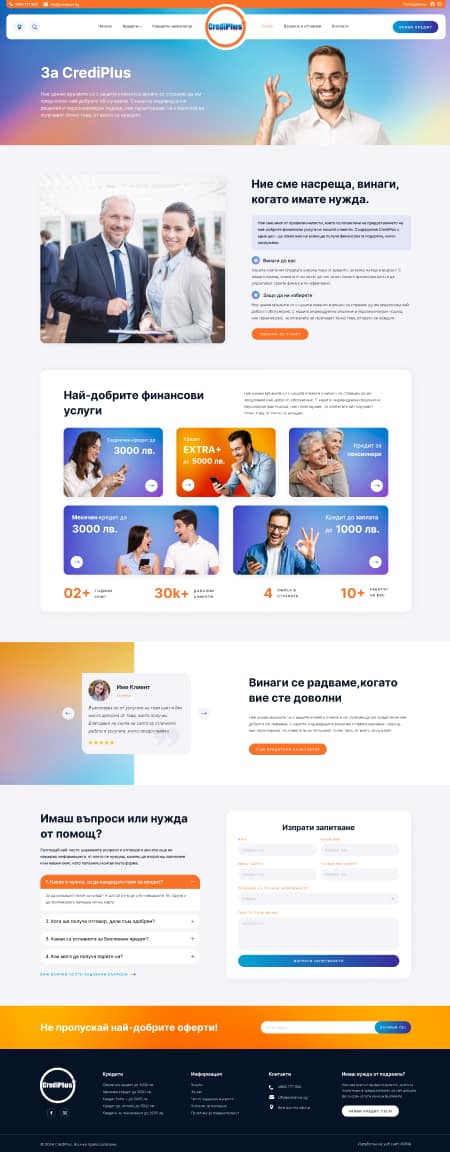 Нашият подход към проекта за Crediplus се основаваше на разбирането, че модерният уебсайт е повече от визия. Той е стратегически инструмент, който трябва да генерира резултати. Чрез внимателен анализ на потребителското поведение, създадохме платформа, която не само изглежда безупречно, но и предоставя безпроблемно изживяване, което увеличава конверсиите и ангажираността на клиентите.