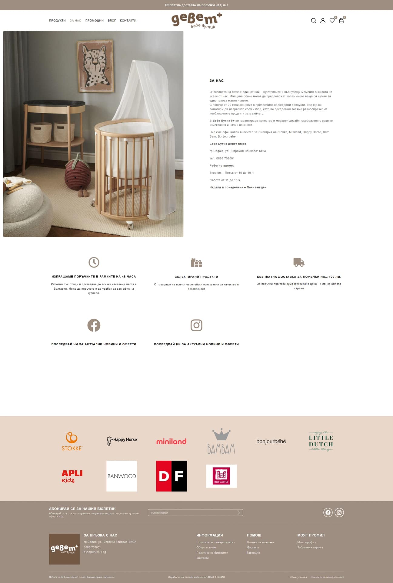 „Работата с АГМА СТУДИО ни даде не просто нов уебсайт, а увереност, че онлайн магазинът ни отразява напълно философията на Бебе Бутик 9+. Те успяха да превърнат нашия дългогодишен опит и отношение към родителите в ясно, удобно и приятно дигитално изживяване. Сайтът е лесен за навигация, бърз и подреден, а процесът на пазаруване е значително по-спокоен и интуитивен за клиентите ни. Още от старта виждаме по-голям интерес и по-добра обратна връзка от родителите, които ни се доверяват.“
