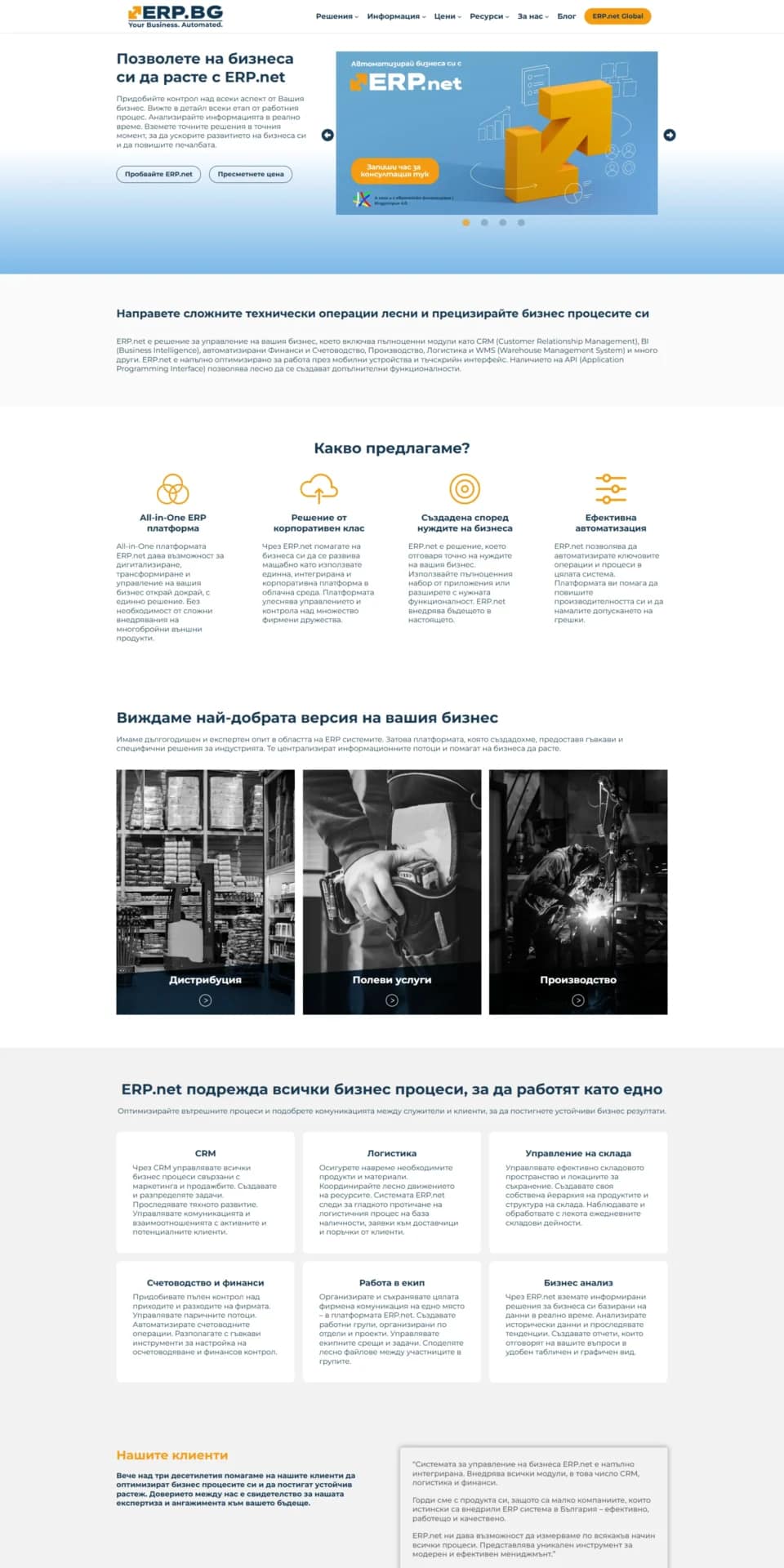 Още при изграждането на сайта заложихме основите на силна SEO оптимизация – с бърза скорост, ясна структура и експертно съдържание. Това осигурява по-добра видимост в търсачките и по-лесен достъп до платформата ERP.net от страна на нови корпоративни клиенти, търсещи ERP/CRM решения.