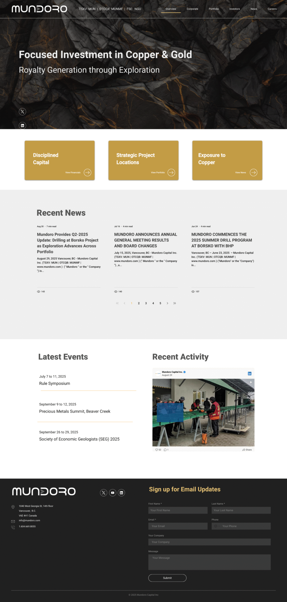Mundoro е компания, базирана в Канада, фокусирана върху придобиване, проучване, разработка и инвестиции в мед и злато.